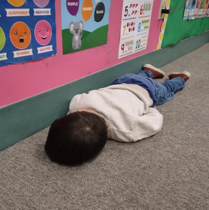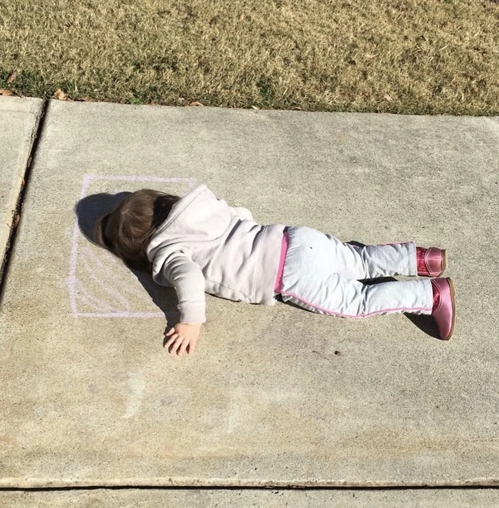 6. „Мојата 2-годишна ќерка нацрта перница со креда, а потоа легна да дремне…“