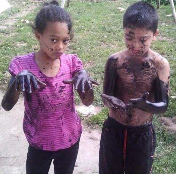 1. „Оваа фотографија од мене и мојот пријател како наоѓаме тенџере со сјајна боја и решаваме да ја обоиме целата моја соба, боејќи сè во собата“.