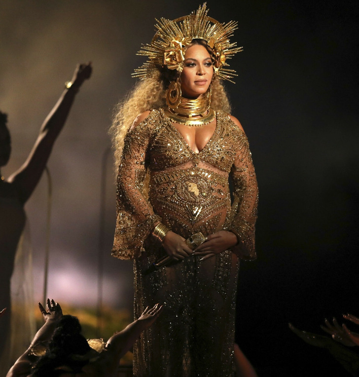 На годишните Греми награди во 2017 година, пејачката се појави во многу провокативна облека – блескав златен фустан и наметка што личеше на ореол. Фустанот беше инспириран од сликите на Густав Климт и од стиховите на песната на Бијонсе, Love Drought. А сончевите зраци на нејзината покривка се однесуваа на Ошун, африканската божица на божественоста, женственоста, плодноста, убавината и љубовта.