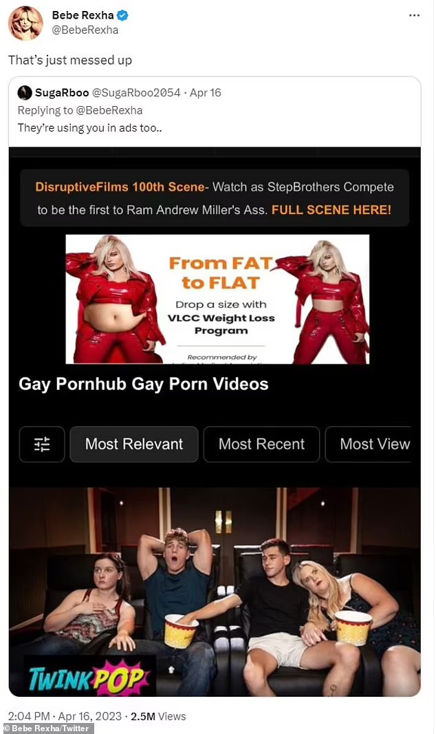 Исто така еден корисник на Твитер @SugaRboo2054 истакна дека нејзиниот имиџ незаконски се користи за реклама на програмата за слабеење VLCC од „дебело до рамно“ на PornHub.