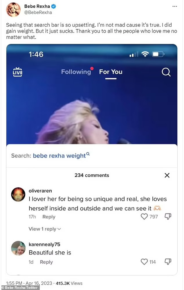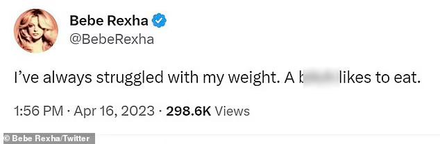 Уште во јуни 2021 година, Бебе го промовираше движењето за „нормализирање на 165 килограми“ пред со солзи да признае шест месеци подоцна дека е најдебела што некогаш била и се чувствувала одвратно во нејзиното тело.