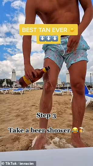 Обожавателите на овој бизарен метод нанесуваат пиво и заштитен фактор кога се сончаат, додека други целосно ја прескокнуваат негата против сонце и едноставно нанесуваат алкохол на кожата.