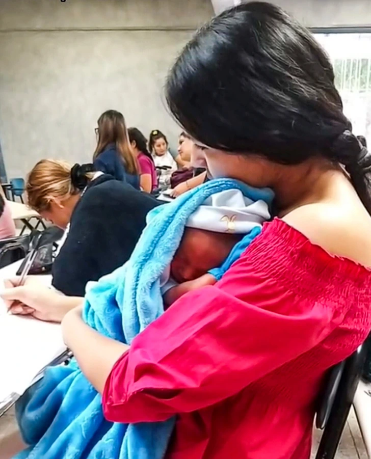 Некои луѓе би помислиле дека тоа е невозможно, но таа направи целата оваа работа да се случи пред нашите очи. Секој ден, таа носела храбра одлука да го носи своето драгоцено бебе на часови. На некои слики дури и изгледа како и нејзиното бебе да внимава на часовите.