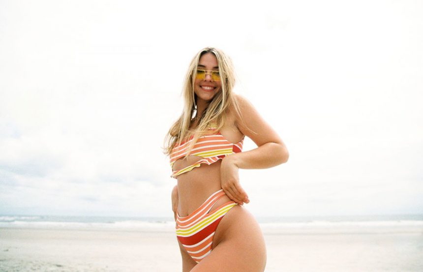 Девојка на денот: 24-годишната американска актерка и модел Медлин Клајн рекламира костими за капење