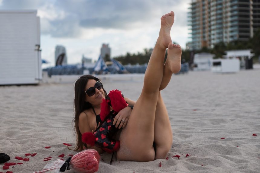 Клаудија Романи позира во бикини на плажа во Мајами во фотосесија за Денот на вљубените.