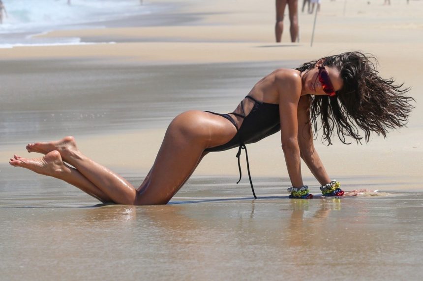 37-годишниот бразилски супермодел Изабел Гуларт во интересен костим за капење на плажа во Рио де Жанеиро.