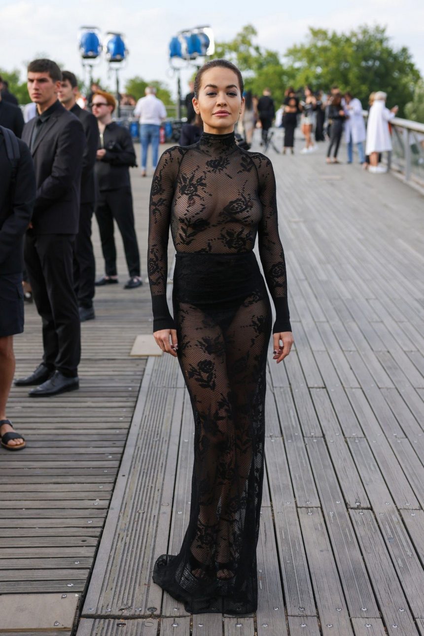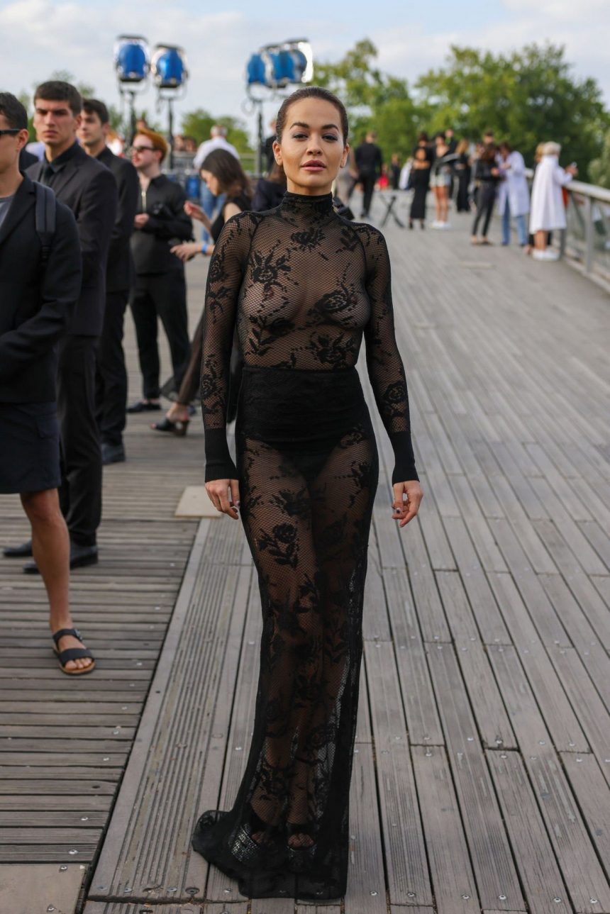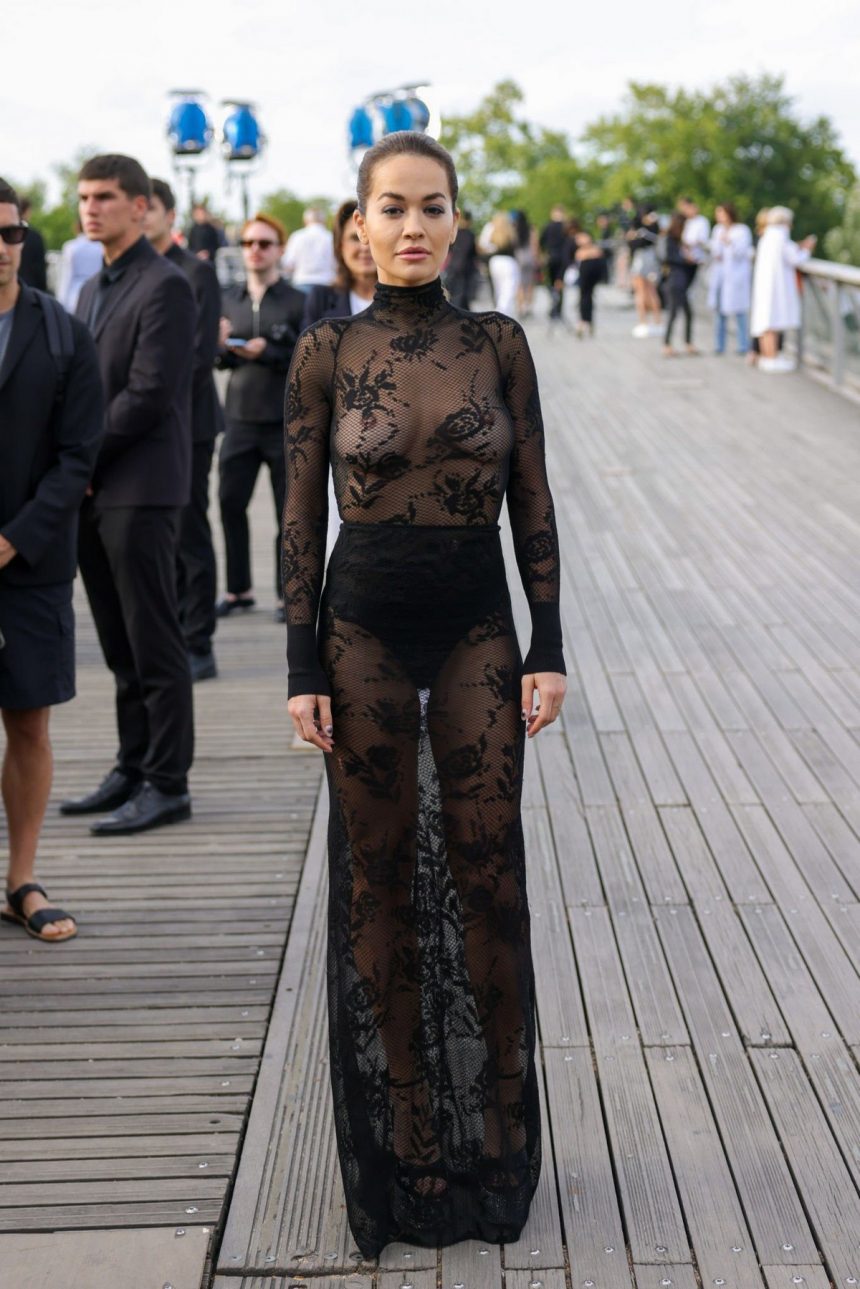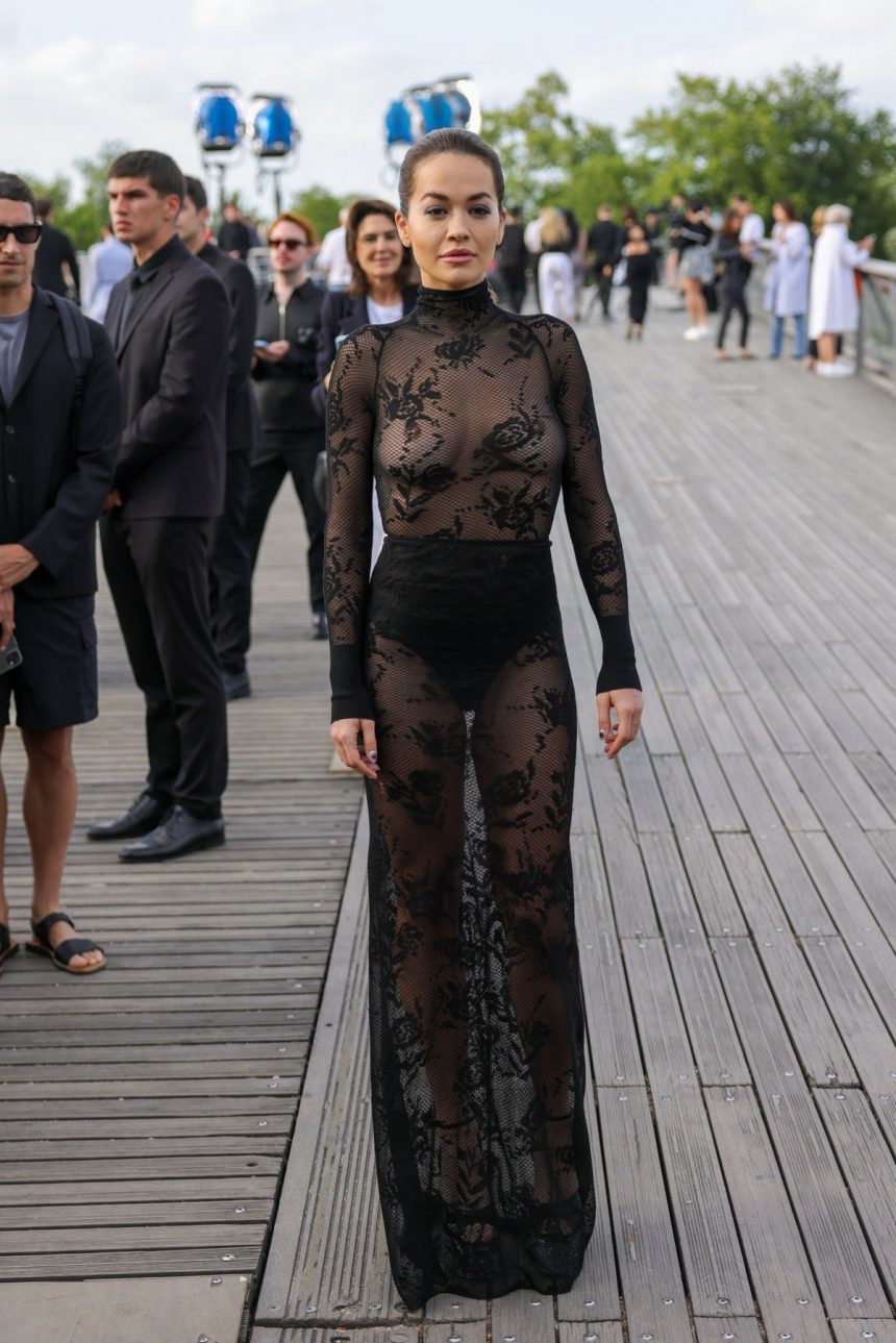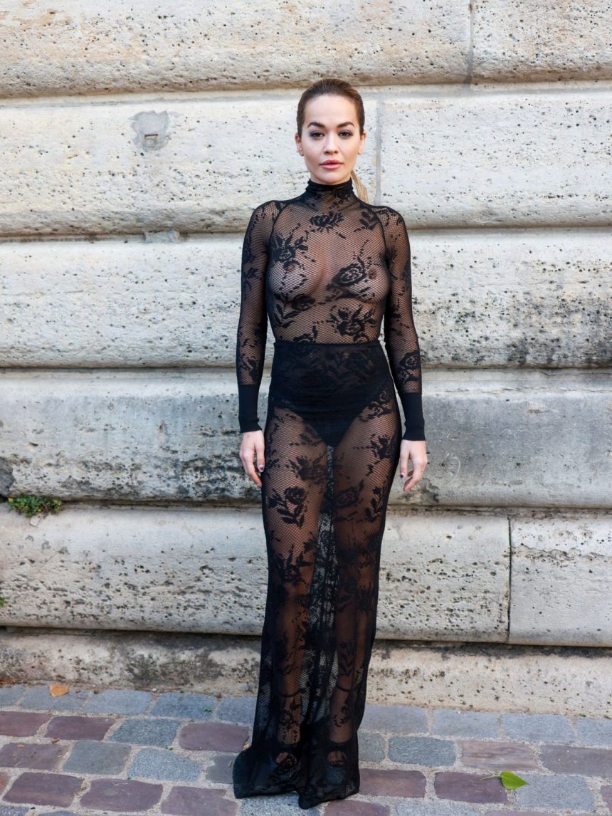 32-годишната британска пејачка, текстописец и актерка Рита Ора во проѕирен фустан оди на ревијата на Azzedine Alaia во Париз.
