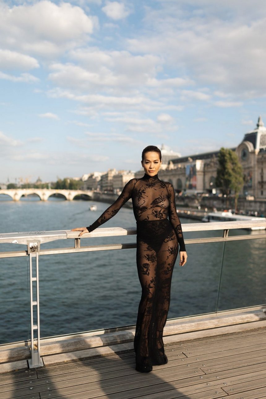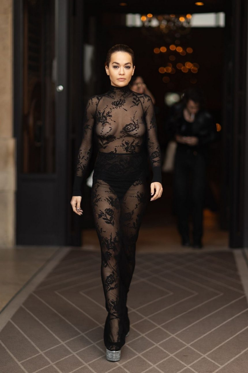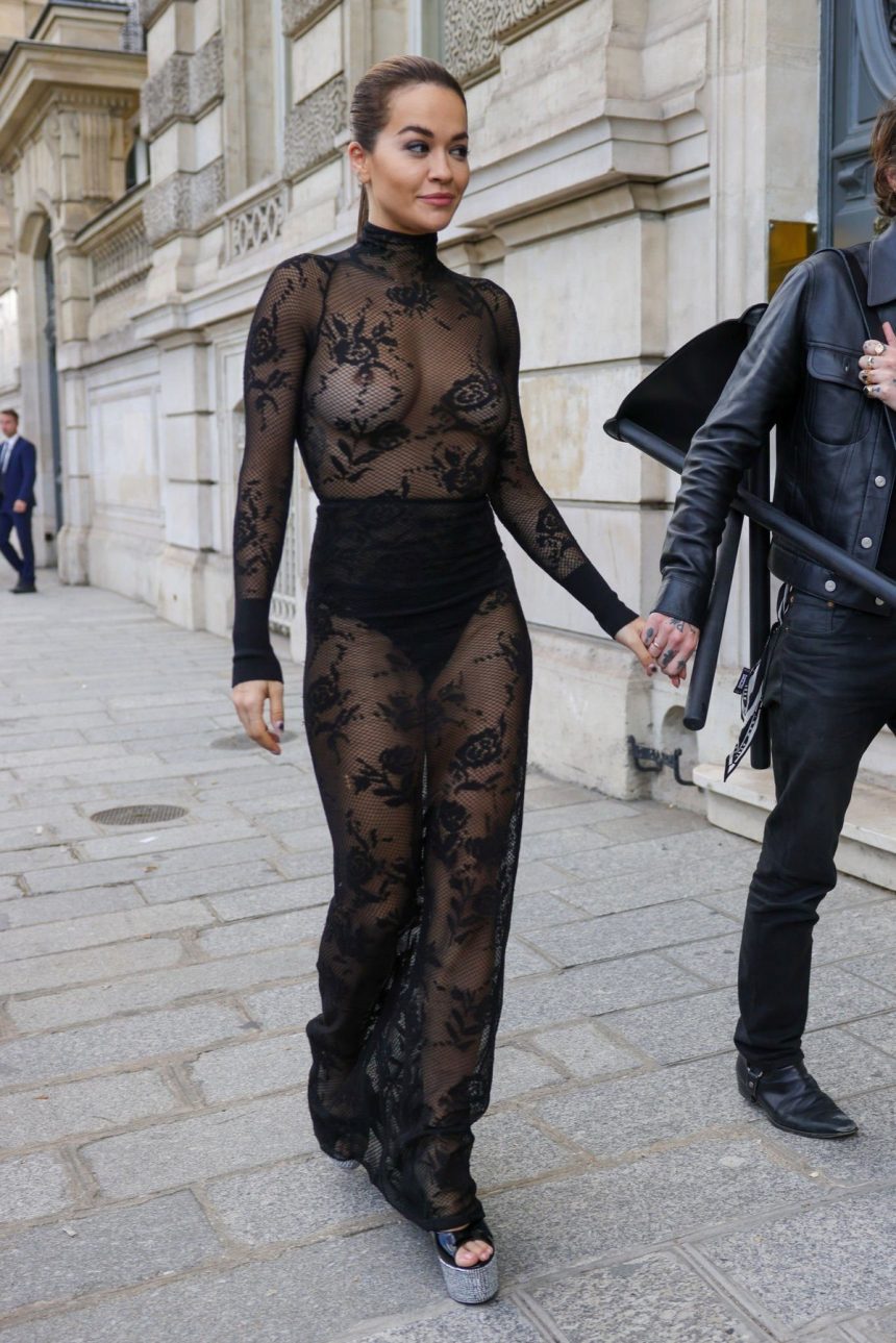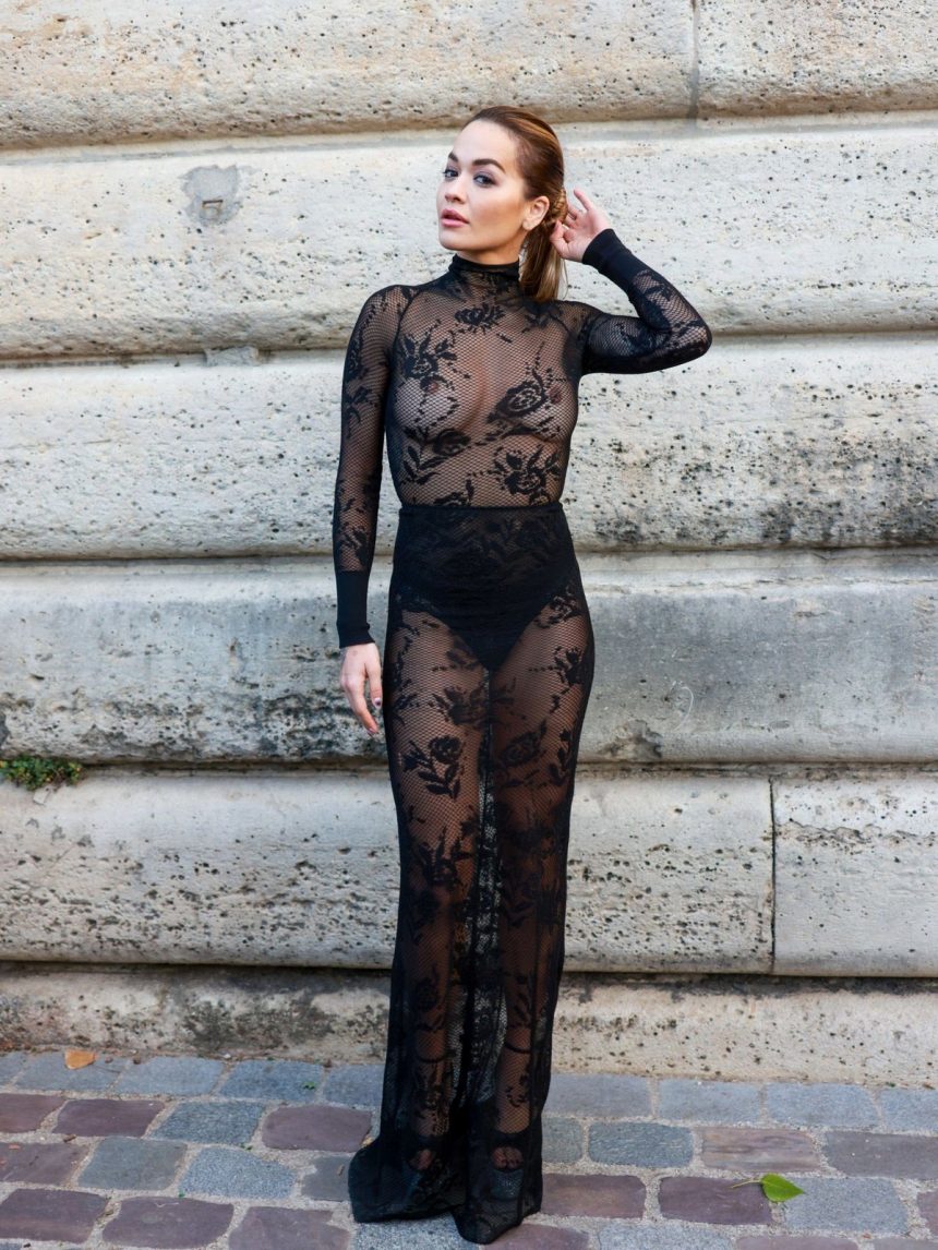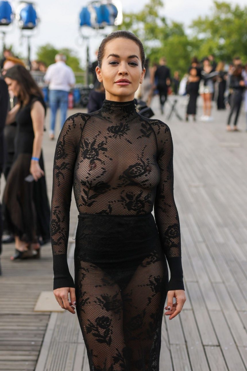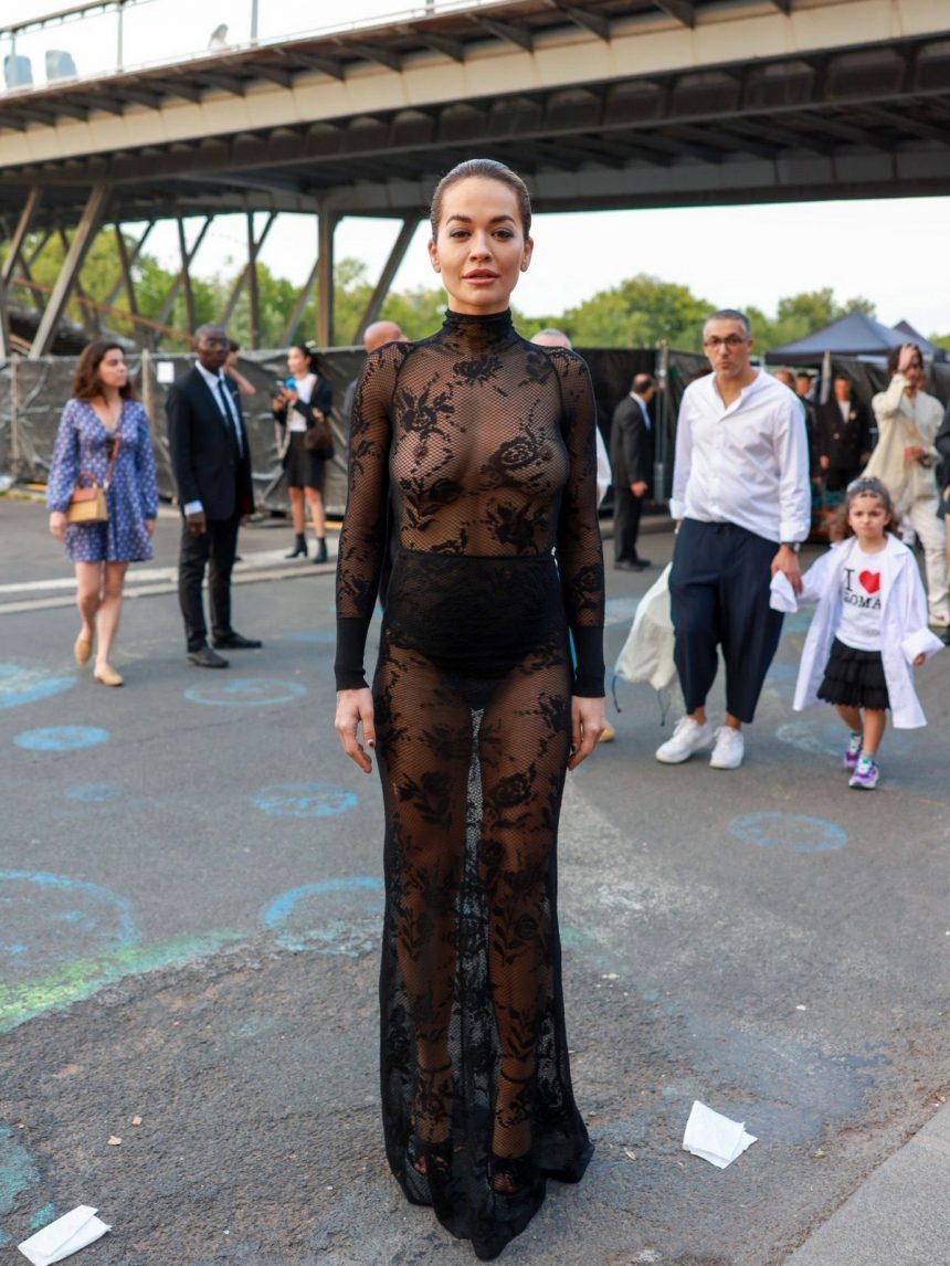32-годишната британска пејачка, текстописец и актерка Рита Ора во проѕирен фустан оди на ревијата на Azzedine Alaia во Париз.