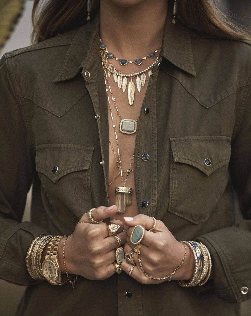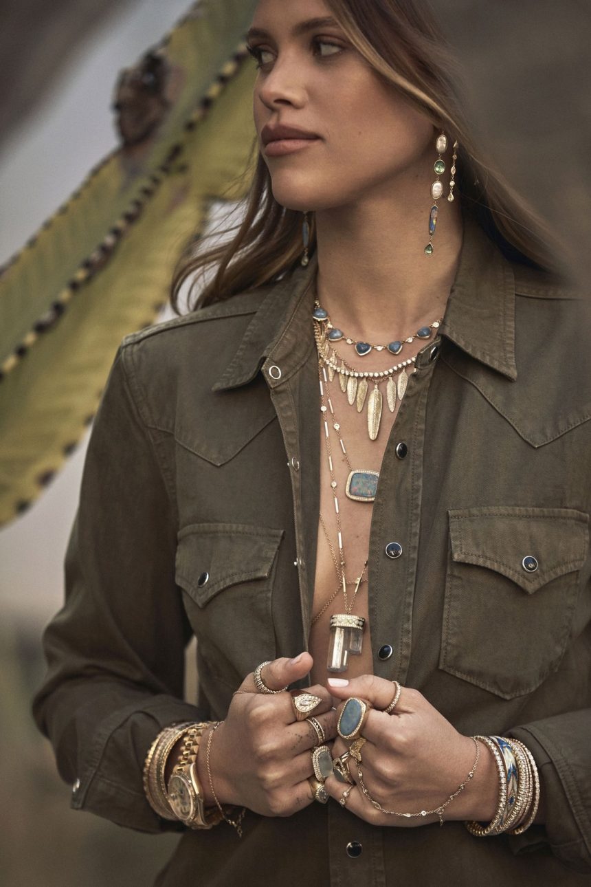 23-годишната американска манекенка Софија Ричи во новата кампања „Divine Rising“ за брендот Jacquie Aiche, кој продава рачно изработен накит.