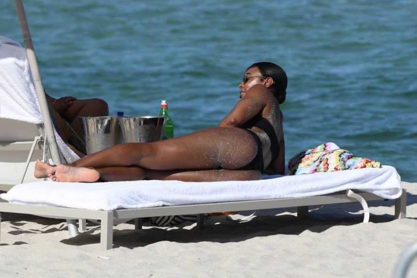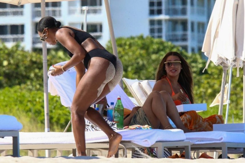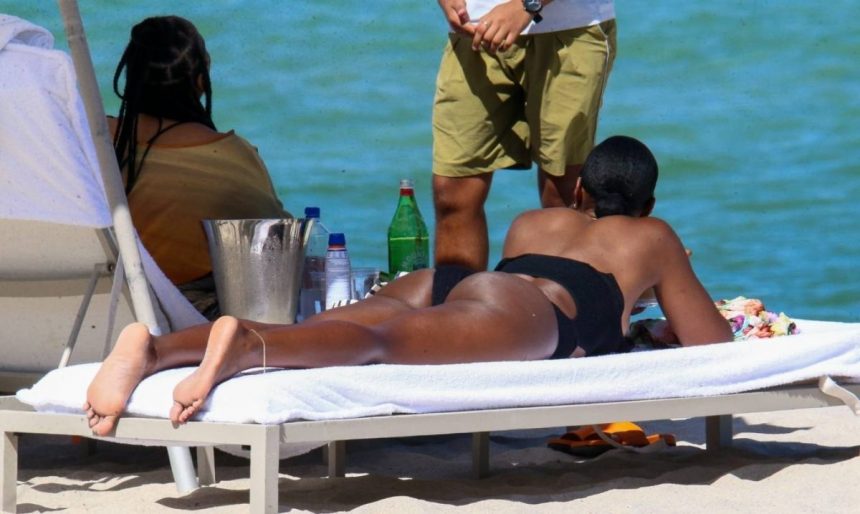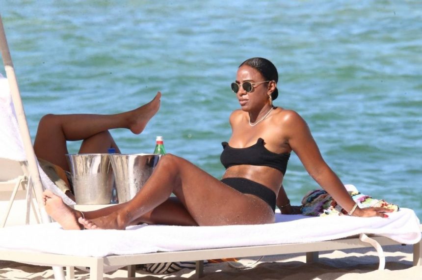41-годишната американска пејачка и актерка Кели Роланд ужива во црни бикини на плажа во Мајами.