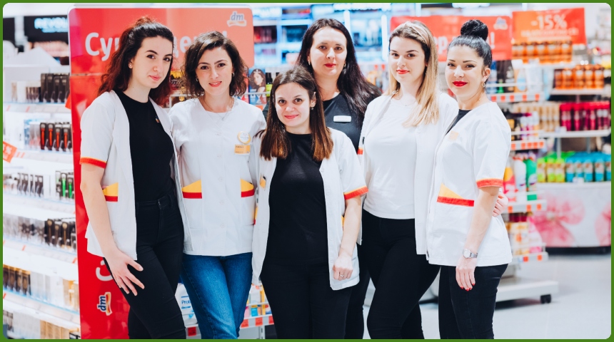 На македонскиот пазар dm drogerie markt се издвојува од конкуренцијата на повеќе начини и ја задржува улогата на посакуван работодавач. Потврда за ова се низа придобивки за вработените, меѓу кои се и личниот и професионален развој, 14 атрактивни плати во текот на годината, проширените здравствени систематски прегледи, ваучерите за приватни здравствени прегледи, бесплатните курсеви по германски јазик, како и редовните обуки и семинари достапни во текот на целата година.