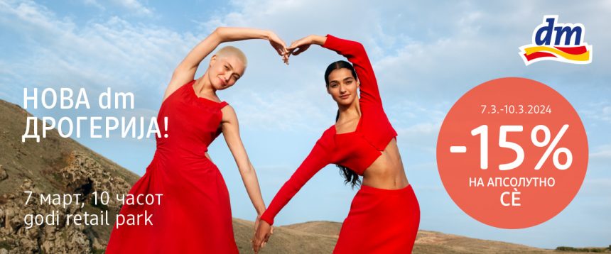 Најголемиот дрогериски ланец во Европа – dm дрогерие маркт ја продолжува својата експанзија на домашниот пазар и на 7 март 2024 година, започнувајќи од 10 часот, ги отвора вратите на својата 24-та дрогерија во godi Retail Park!