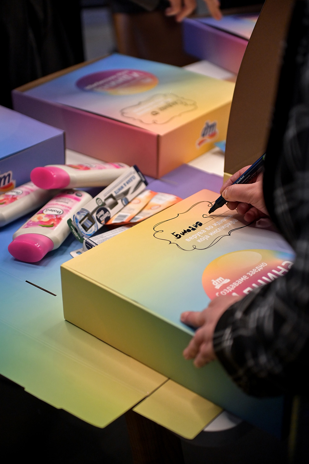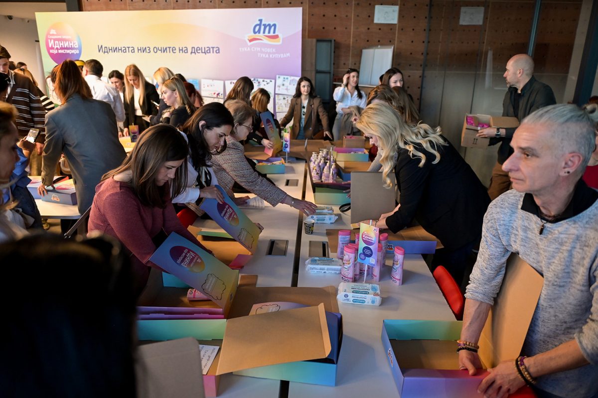 Во рамки на настанот повеќе од 100 новинари, инфлуенсери, соработници, волонтери и претставници на организации, учествуваа во волонтерска акција за подготовка и пакување на пакети со dm производи, наменети за Кризен центар „Надеж“, и Националната мрежа против насилство врз жени и семејно насилство.