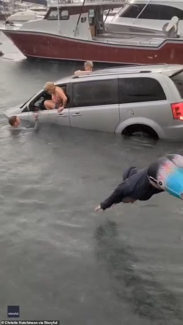 Кристи Хачинсон го сними драматичниот момент на видео на кое се гледа како екипажот доплива до нив и им помага да излезат неповредени. Двајца мажи врзуваат јаже на задниот дел од сребрениот Chrysler Town & Country и се обидуваат да го спасат комбето, но нивните напори на крајот се залудни бидејќи тоа брзо тоне.