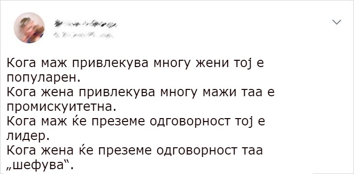 Од корисници на Твитер беше побарано да споделат пример за двоен стандард кога станува забор за полот, а шаренилото од одговори воопшто не не` изненади.