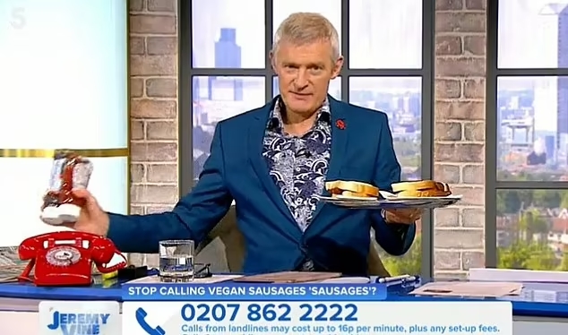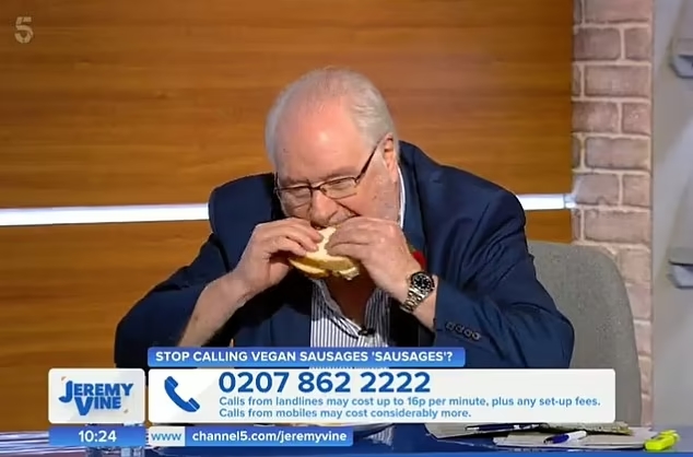 Мајк Пери, кој сака луѓето да престанат да ги промовираат веганските алтернативи „колбаси“, беше понижен во шоуто на Џереми Вајн откако не успеа да препознае дека неговиот сендвич со колбаси не е вистинско месо.