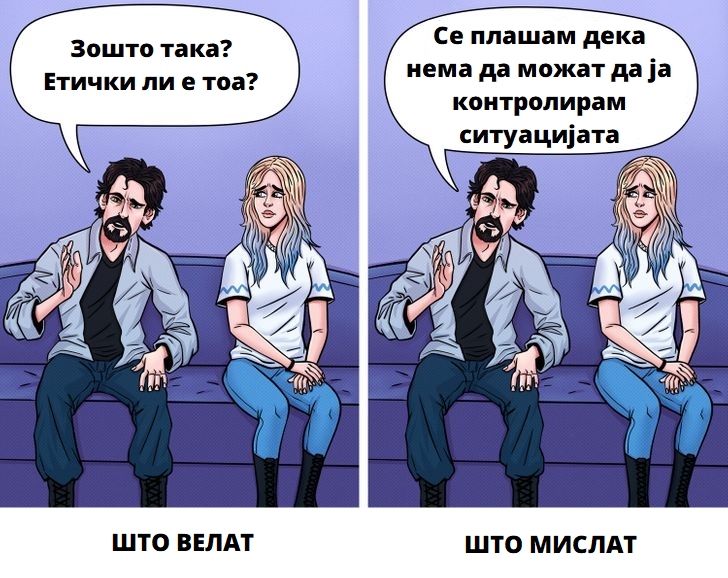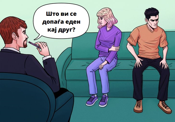 Некој од партнерите не сака другиот да остане насамо со специјалистот затоа што така не би можеле да ја контролираат ситуацијата. Вака психологот веднаш знае дека станува збор за варијанти на контролирање, манипулација и навредување.
