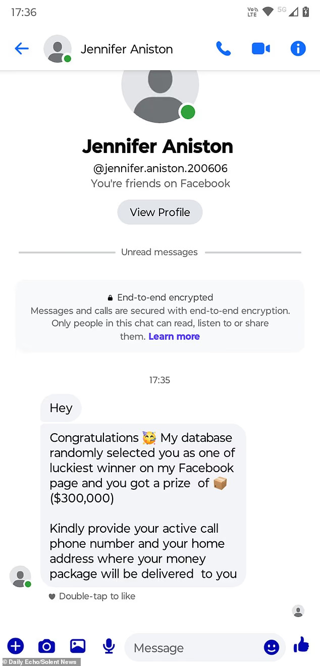 Пол секојдневно добивал стотици пораки од лажни профили – од Марк Закерберг, Илон Маск, па сè до неговата омилена актерка Џенифер Анистон. Секој нов ден носел нова форма на манипулација: фалсификувани лични карти, лажни видеа кои го уверувале дека освоил награди, па дури и љубовни изјави. Во една поразителна порака, „Џенифер Анистон“ му пратила фотографија од наводна возачка дозвола и признание дека го сака – но само ако ѝ испрати пари.