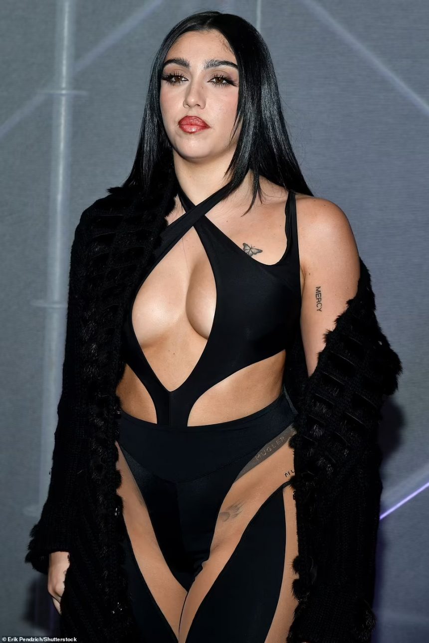 Ќерката на Мадона (26) пројави самодоверба во смел црн исечен костим кој ја покажа нејзината бујна става и облините на песочен часовник.