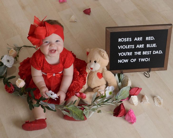 Белешката во таблата вели: „Розите се црвени, темјанушките се сини, ти си најдобриот татко, сега на двајца!“