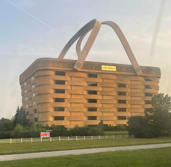 „Возев покрај оваа зграда која изгледа како кошница за пикник во Охајо, САД“.