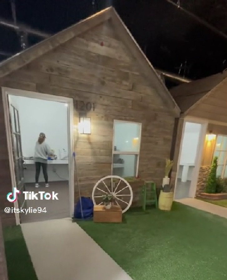 Една од малите куќи изгледа како розов замок, а Кајли објаснила дека токму тука работи сопругата на шефот. Некои од другите куќи имаат различна естетика и бои.