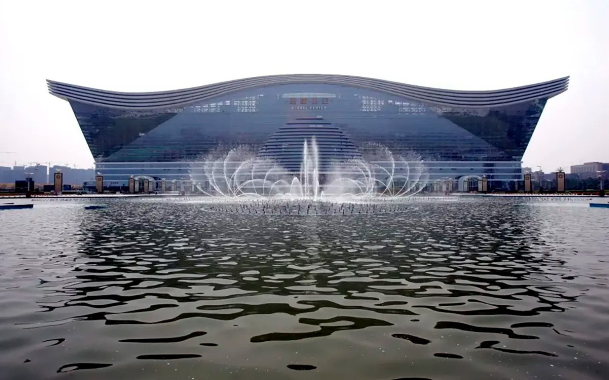 Проектиран од Shenzhen Zhongshen Architects, New Century Global Center се истакнува со брановидна кровна покривка инспирирана од летот на галеби. Со површина од 1,7 милиони квадратни метри, должина од 500, ширина од 400 и висина од 100 метри, објектот се дели на четири главни зони: