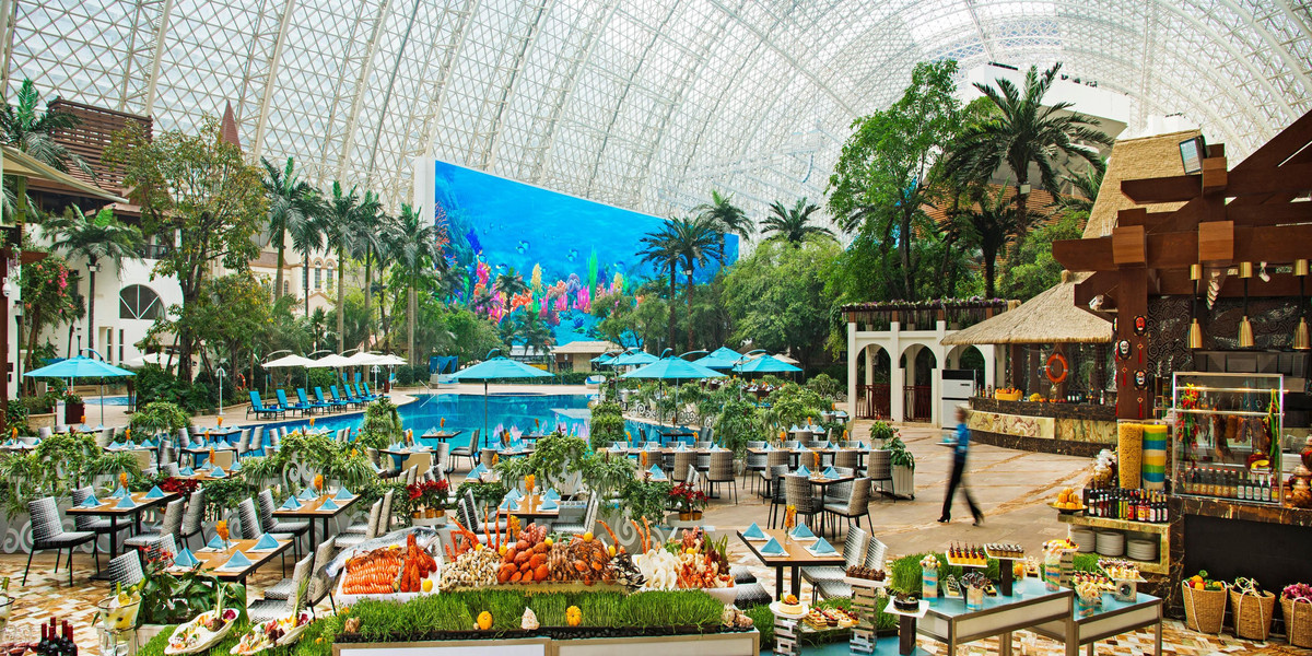 – Огромен аквапарк „Рајски Остров“ под стаклена купола, со вештачка плажа и најголем LED екран на светот.