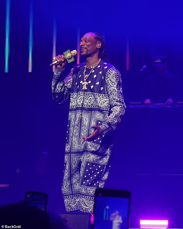 Снуп, кој е познат по својата љубов кон канабисот, го отвори својот сет во 21.30 часот со видео на кое пуши џоинт во неговиот хотел и ја прашува публиката што да облече.