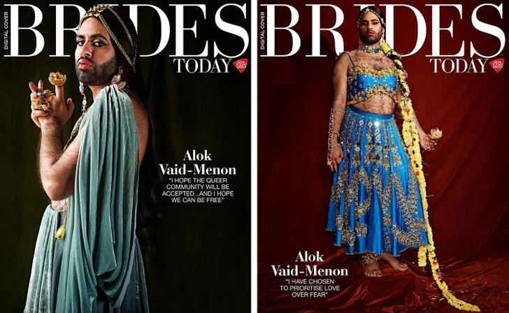 Списанието од англиско говорно подрачје Brides Today сподели 3 дигитални насловни страници на Инстаграм, на кои е прикажан небинарниот транс активист и комичар Алок Ваид-Менон како моделира различни наметки. 31-годишниот Алок Ваид-Менон е американски писател, изведувач и медиумска личност кој настапува под називот АЛОК.