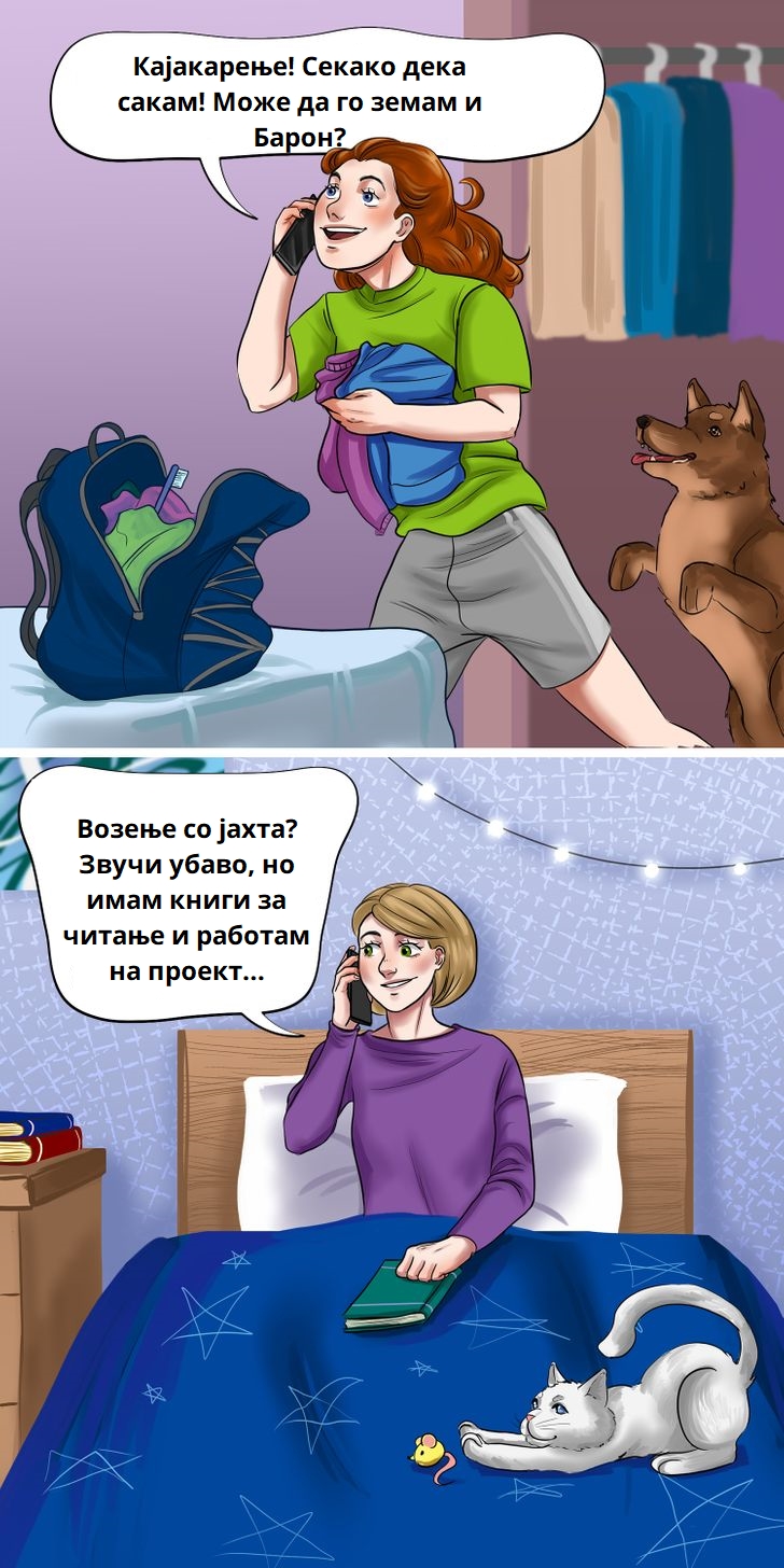 За љубителите на мачки, љубопитноста и љубовта кон авантурата лесно можат да го совладаат стравот. Љубителите на кучиња, од друга страна, имаат тенденција да бидат претпазливи за нови работи.