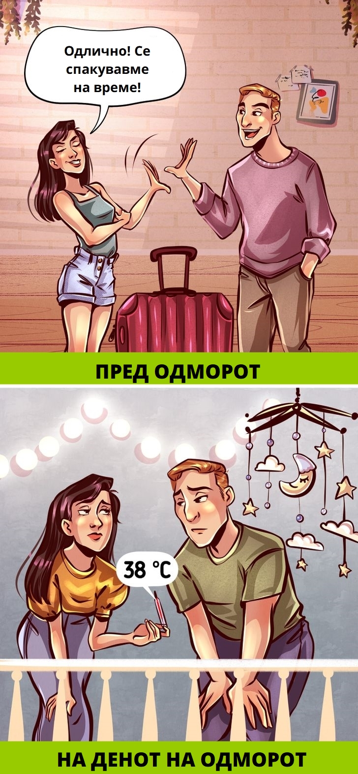 Со доаѓањето на детето во семејството, вообичаениот живот се превртува наопаку. Со малата личност ќе стане тешко да се одржува редот, да се комуницира со пријателите или едноставно да се отиде до продавница. Но, од моментот на раѓањето на детето, неговите родители почнуваат да развиваат болно пумпање на трпение, самоиронија и способност да ги затворат очите пред многу секојдневни проблеми.