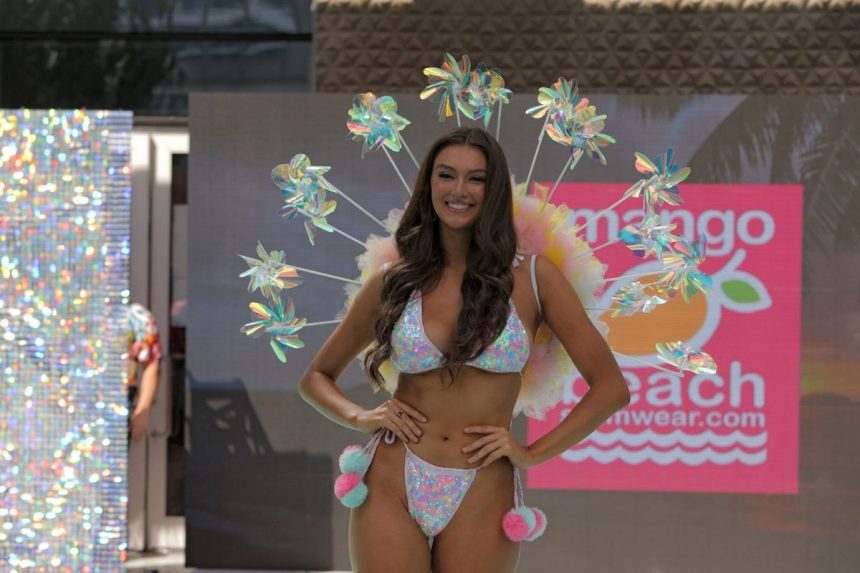19-годишната американска ТВ водителка, актерка и манекенка Рејчел Пицолато покажува бикини на модната писта за време на New York Swim Week.
