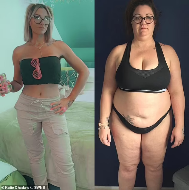 Кејти Чедвик (37) од Богнор Реџис, Сасекс, не внимавала што јаде и уживала во нездрава храна. Тежината на мајката на две деца варирала со текот на годините, но најлошо било кога имала 120 кила.