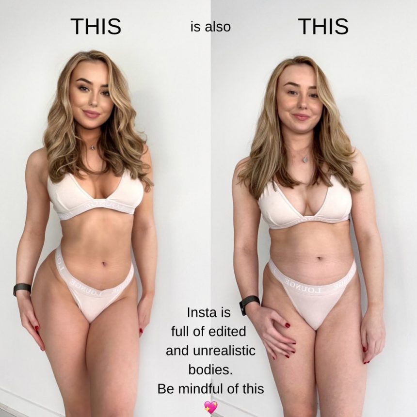 Во описот на објавата, девојката рече дека долго време се обидувала да се навикне на стандардите за убавина. Сепак, таа не успеала да го направи ова, бидејќи била многу уморна. „Општеството не ја дефинира убавината. Тоа лежи во нашата уникатност, личност и добрина“, рече таа и ги повика луѓето да не си создаваат комплески од тоа што го гледаат на Инстаграм. Затоа што да имате набори на стомакот, целулит, нерамнини е сосема нормално.