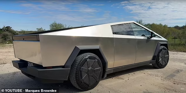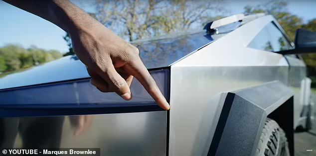 Браунли се осврна и на најзабележливиот аспект на Cybertruck: тоа е во основа триаголник од нерѓосувачки челик. Острите агли на печатените панели на каросеријата од нерѓосувачки челик веднаш му го привлекоа вниманието.