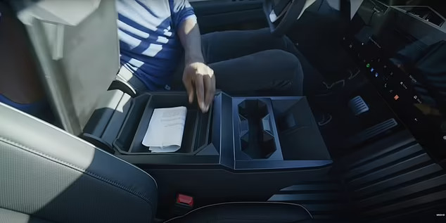Што се однесува до внатрешноста, Cybertruck се придржува до класичниот минимализам на Tesla, но со некое кул светло надземно со допир и амбиентални светла наоколу што може да се приспособат преку софтверот на автомобилот.