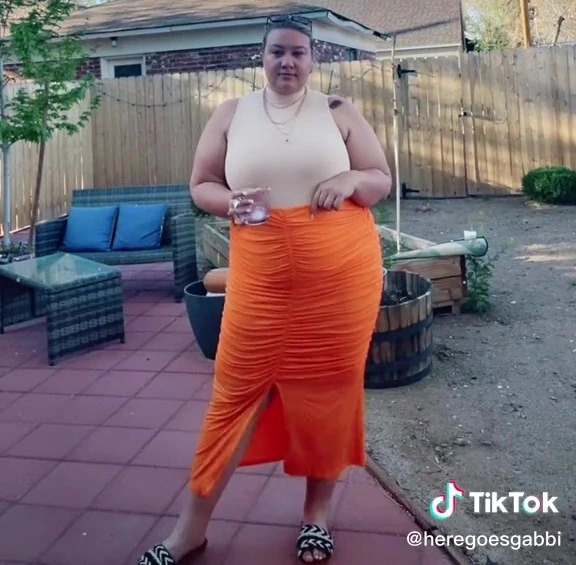 Модната блогерка Габи редовно споделува видеа на кои се подготвува за својата работа на својот ТикТок, а неодамна објави и видео во кој носи портокалово здолниште со крем топ. Здолништето за кое станува збор беше со средна должина, со бразди напред и назад и мал шлиц напред, и поттикна едно лице да коментира: „Здолништето не е соодветно за работа“.