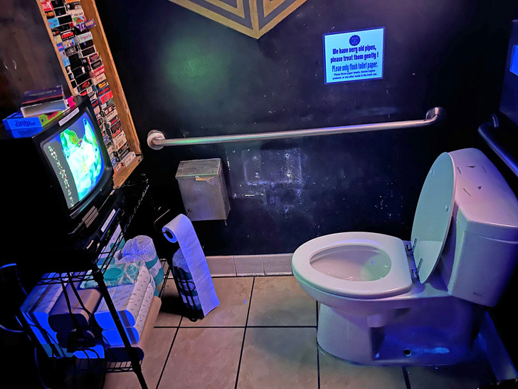„Можете да гледате филм во овој тоалет на ресторанот додека си ја вршите својата работа“.