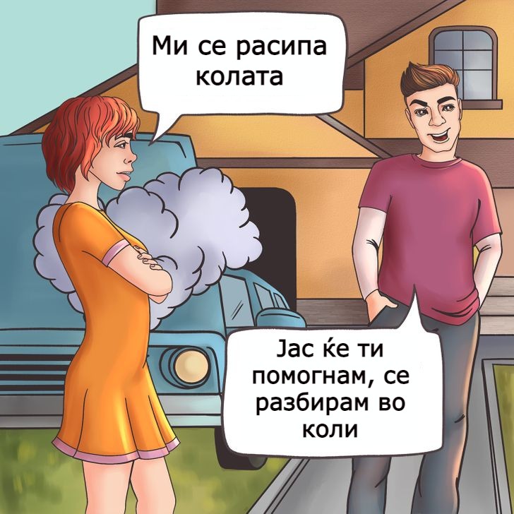 Се разбира на секој може да му се случи да му се расипе автомобилот, но имајте на ум дека многу демначи сакаат да глумат херои. Тие можат да создадат ситуации кога ќе можат да ве спасат и да бидат вашиот принц на бел коњ. Тие „случајно ќе поминат и ќе забележат дека ви треба помош“.