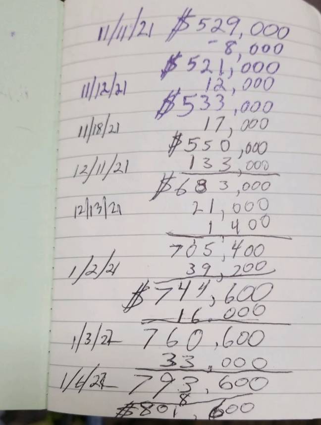 При претресот на домот на ДеВуоно, органите на редот заплениле 900.000 американски долари и книга во која се документирале профитите од ноември 2021 година до јануари 2022 година, што го направиле жените, кој изнесувал над 1,5 милиони долари.