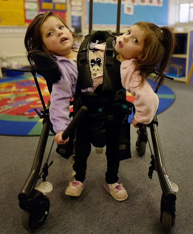 Шестгодишните споени близначки, кои се поврзани од градната коска надолу им пркосат на сите шанси дадени од докторите и сега одат во градинка со нивното заедничко тело.