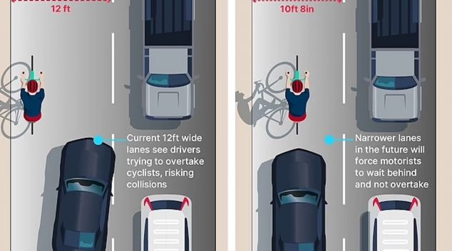Патните ленти низ цела Британија ќе се стеснуваат за да се спречи претекнување на велосипедистите, како дел од новата стратегија на властите против возачите. Според препораките што неодамна тивко беа објавени на веб-страницата на Владата, стандардната ширина на патна лента што важеше речиси 150 години – 3,66 метри – повеќе не е соодветна поради ризикот …
