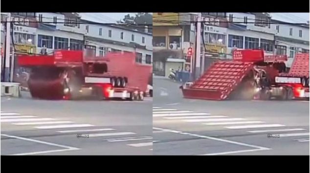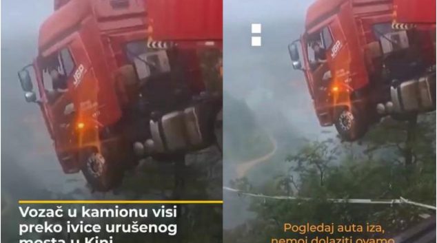 Страшно! Камионот виси на работ на урнат мост во Кина, а возачот е заглавен во кабината
