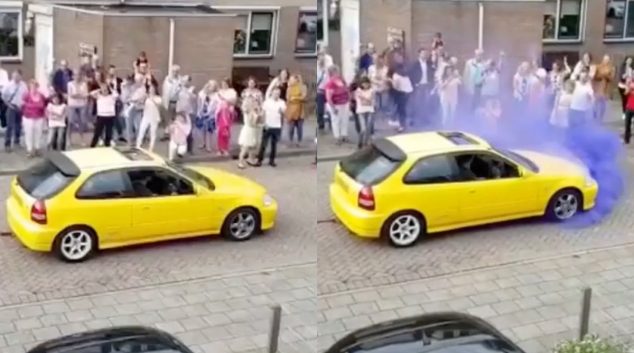 Оригинално откривање на полот на бебето со горење гуми на Honda Civic