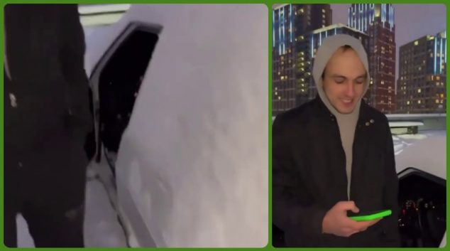 Шизикот си има свој начин на брзо чистење на автомобилот од снег