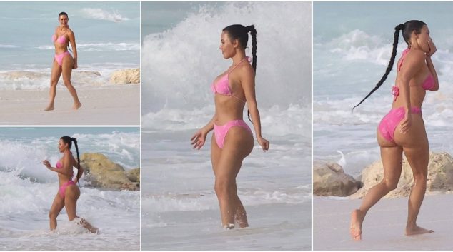 Ким Кардашијан нѐ почести со нови папарацо фотографии во розеви бикини