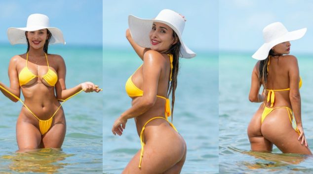 Девојка на денот: Аргентинската манекенка Дорина Гилен во жолто бикини на плажа во Мајами