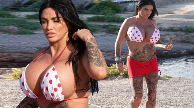 Поранешната манекенка Кејти Прајс ги „сервира” своите најголеми гради досега на плажа во Ибица