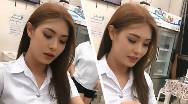 Девојката носи ултра краток минич и одеднаш ѝ се покажа мачето